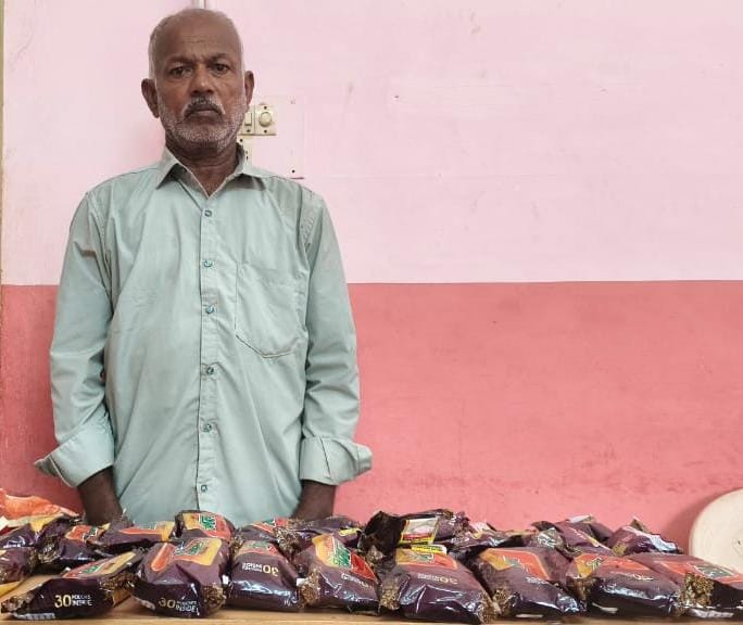 இதனை அடுத்து அருளப்பன்-ஐ காவல்துறையினர் கைது செய்து அவரிடம் இருந்து 1.ஹான்ஸ் – 480 கிராமம் 2. பான் மசாலா – 1.05 கிகி 3. புகையிலை பொருட்கள் – 126 கிராம் முதலிய பொருட்கள் பறிமுதல் செய்யப்பட்டுள்ளன.