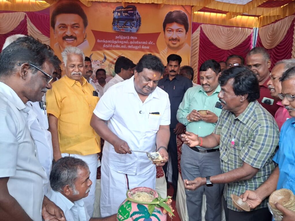 அரியலூர் மாவட்டத்தில் தமிழ்நாடு அரசு போக்குவரத்து கழகம் கும்பகோணம் ,( லிமிடெட் ) திருச்சிராப்பள்ளி மண்டலத்தின் சார்பில் அரியலூர் பணிமனை வளாகத்தில் சமத்துவ பொங்கல் விழா , போக்குவரத்து மற்றும் மின்சார துறை அமைச்சர் சா. சி. சிவசங்கர் தலைமையில் நடைபெற்றது.