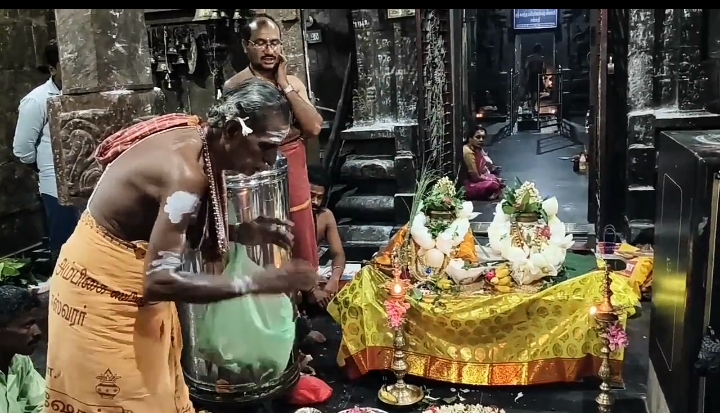 அதேபோல் புதுக்கோட்டை மாவட்டம் கறம்பக்குடி அருகே பிரசித்தி பெற்ற பழமைவாய்ந்த ஸ்ரீ.சுகந்த பரிமளேஸ்வரர் உடன் பெரியநாயகி அம்மன் ஆலயம் உள்ளது. இந்த ஆலயத்தில் கார்த்திகை மாதம் முதல் சோமவாரமான திங்கள் கிழமை இன்று சிவன் சன்னதிக்கு முன்பாக 108 சங்குகள் மூலம் சிவன் திருமேனி வரைந்து தலைவாழை இலையில் அரிசி போட்டு தர்பை புல் வைத்து சங்குக்கு சந்தனம் குங்குமம் வைத்து மலர்களால் அலங்கரித்து சங்குகளின் நடுவில் ஒரு தட்டில் சிவப்பு நிற துணியில்
