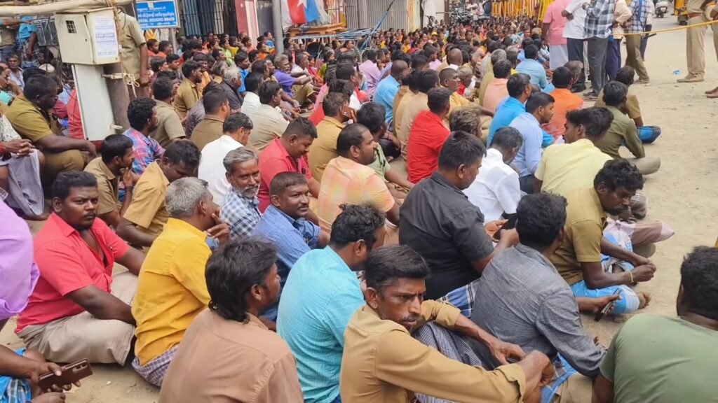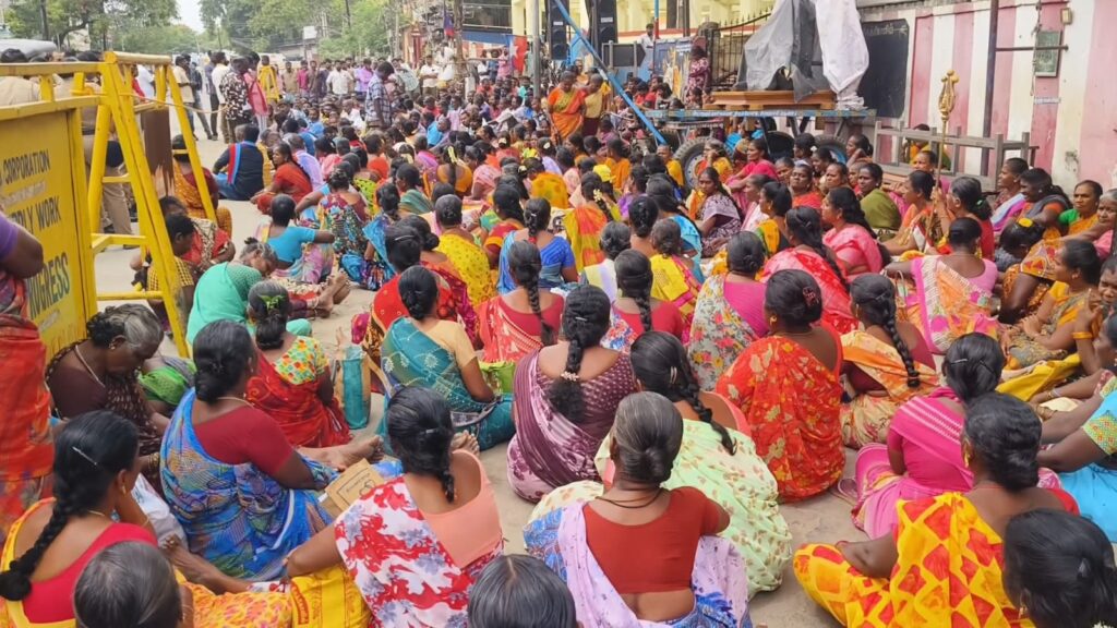 அனைத்து பிரிவு பணியாளர்களளுக்கும் தீபாவளி பண்டிகை போனசாக ஒரு மாத சம்பளத்தை வழங்கிட வேண்டியும் சென்னை தூய்மை பணியாளர்கள் போராட்டத்திற்கு ஆதரவு தெரிவித்தும் காவல்துறையின் அராஜகத்தை கண்டித்தும் மதுரை மாநகராட்சி தூய்மை பணியாளர்கள் ஆகஸ்ட் -18 ஆம் தேதி நேற்று முன்தினம் முதல் காத்திருப்பு போராட்டத்தை தொடங்கினர். தற்போது கோரிக்கைகளை வலியுறுத்தி பெரியார் பேருந்து அருகே உள்ள மேலவாசல் பகுதியில் ஐந்தாவது நாளாக போராட்டத்தில் ஈடுபட்டு வருகின்றன.