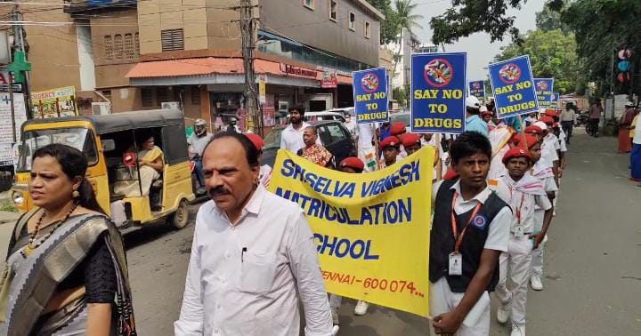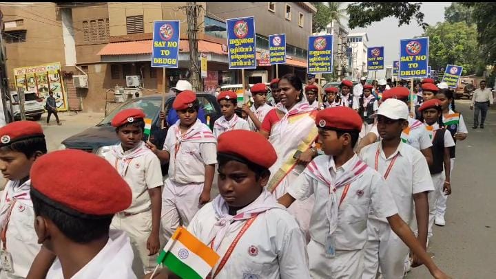 போதைப்பொருள் பழக்கத்தால் சமூகம் எதிர்கொள்ளும் பாதிப்புகளை உணர்த்தும் நோக்கில், இளைஞர்கள், மாணவர்கள், மற்றும் சமூகப் பிரமுகர்கள் கலந்து கொண்டு விழிப்புணர்வு கோஷங்களை எழுப்பினர்.