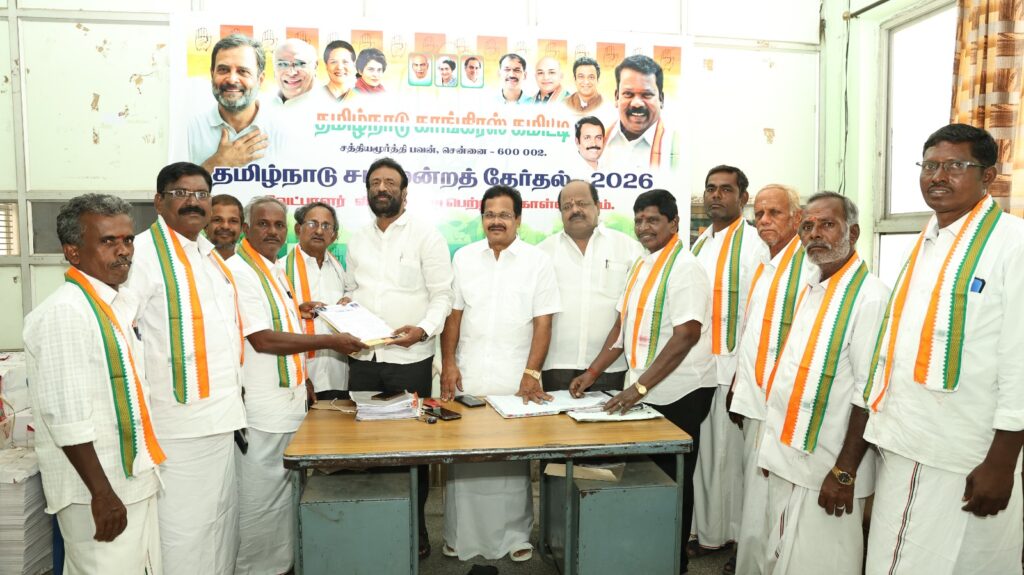 சென்னை சத்திய மூர்த்தி பவனி அலுவலகத்தில் , இந்திய தேசிய காங்கிரஸ் கட்சியின் சட்டமன்ற தேர்தல்மேலிடபொறுப்பாளரிடம்,அரியலூர்சட்டமன்றத் தொகுதி (149) யில் இந்திய தேசியக் காங்கிரஸ் கட்சி சார்பில், வரும் 2026 சட்ட மன்ற தேர்தலில் போட்டியிட விருப்பம் தெரிவித்து,திருமனூர் ஒன்றியம்,சாத்தமங்கலம்முன்னாள்ஊராட்சி மன்ற தலைவரும், முன்னாள் மாவட்ட மாணவர் காங்கிரஸ் தலைவரும்,முன்னாள் திருமானூர் வட்டார காங்கிரஸ் தலைவரும்,அமைப்புசரா தொழிலாளர் மற்றும் கட்டுமான தொழிலாளர் சங்கத்தின் மாநில பொதுச்செயலாளருமானஅ.பாண்டியராஜன்,தனது விருப்பமனுவை தாக்கல் செய்ய செய்தார்.