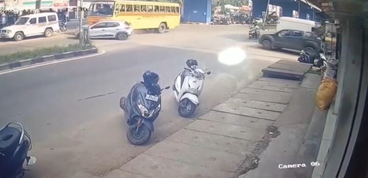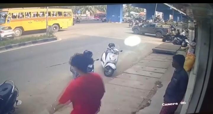 அந்தக் காட்சி அப்பகுதியில் கடையில் பொருத்தப்பட்டு இருந்த கண்காணிப்பு கேமராவில் பதிவாகி உள்ளது. மேலும் அதில் பள்ளி பேருந்து அதிவேகமாக வந்ததால் மோதியதாக மலையாளத்தில் ஒரு நபர் பேசுகிறார். அந்த காட்சிகள் தற்போது சமூக வலைதளங்களில் வெளியாகிய அதிர்ச்சி ஏற்படுத்தி உள்ளது.