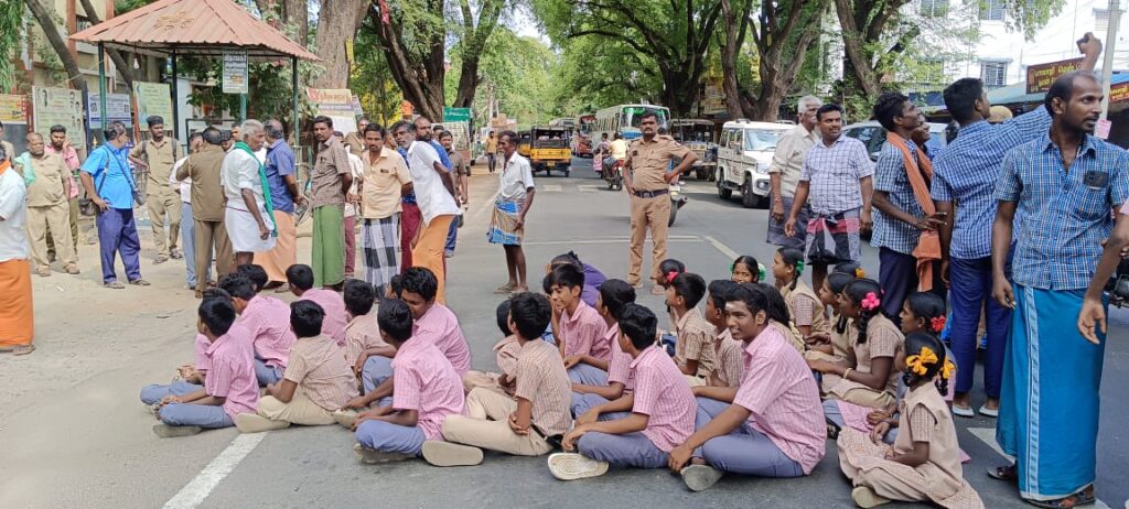 பள்ளி மாணவ மாணவிகள் முற்றுகை போராட்டம்..,