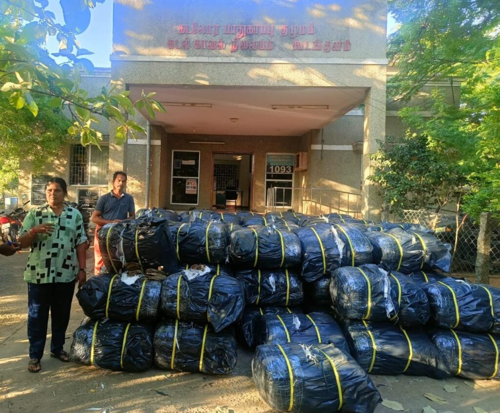 கூடங்குளம் கடல் எல்லை கடற்கரை பகுதியான கூத்தன்குழி லைட் ஹவுஸ் அருகே இலங்கைக்கு ரூபாய் 17,95300 மதிப்புடைய பீடி இலையை சட்ட விரோதமாக கடத்திய திருநெல்வேலி மாவட்டம் ஊர்காவல் படையில் பணிபுரிந்து வரும் ஆற்றூர், தளபதி சமுத்திரம் பகுதியை சேர்ந்த இசக்கியப்பன் வயது 23 என்பவரை கைது செய்து கண்டெய்னரில் பதுக்கி வைத்த சுமார் 2762 கிலோ பீடி இலை கட்டுகள் பறிமுதல் கடலோர பாதுகாப்பு குழும போலீசார் நடவடிக்கை-மேலும் கண்டெனரை பறிமுதல் செய்து தூத்துக்குடி சுங்கத்துறை கண்காணிப்பு பிரிவு போலீசாரிடம் ஒப்படைத்தனர்.