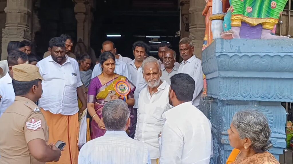 அவரை கோயில் நிர்வாக அதிகாரி ஞானசேகரன் அறங்காவலர் குழு தலைவர் சத்யபிரியா உள்ளிட்டோர் வரவேற்றனர்.
