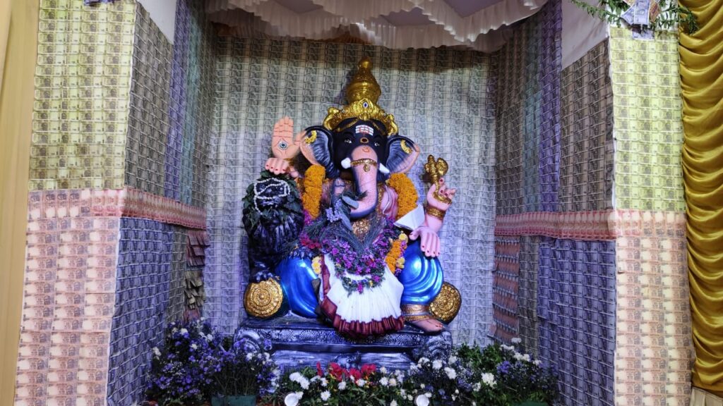 பத்து லட்சம் சலவை ரூபாய் நோட்டால் விநாயகருக்கு அலங்காரம் செய்யப்பட்டது பொதுமக்கள் வியப்புடன் மற்றும் ஆச்சரியத்துடன் பார்த்து சென்றனர்.