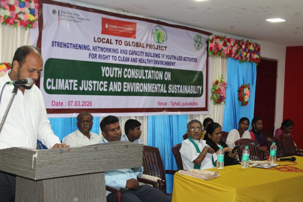 சுற்றுச்சூழல் நிலைத்தன்மை தொடர்பான இளைஞர் ஆலோசனை கூட்டத்தில், Youth for Ecological Sustainability (YES) இளைஞர் வலையமைப்பைச் சேர்ந்த இளைஞர்கள் தங்கள் மாவட்டங்களில் எதிர்கொள்ளும் சுற்றுச்சூழல் பிரச்சினைகளை முன்வைத்து கருத்துகளை பகிர்ந்தனர். சத்யா, திவ்யா பாரதி, ஐஸ்வர், ஜோதிகா, சரவண பாபு, கலைவாணி, மனோஜ், தீபிகா ஆகியோர் நீர் மாசுபாடு மற்றும் நீர் தட்டுப்பாடு, பிளாஸ்டிக் மாசு போன்ற பிரச்சினைகளை எடுத்துரைத்தனர். மேலும் உயிரியல் பல்வகைமையை மற்றும் காடுகளை பாதுகாப்பது, நிலையான விவசாயம் மற்றும் உணவு பாதுகாப்பின் அவசியம், காலநிலை மாற்றத்தின் தாக்கம் ஆகியவற்றையும் வலியுறுத்தினர். சமூக ஒற்றுமை மற்றும் பொதுமக்கள் பங்கேற்பின் மூலம் சுற்றுச்சூழலை பாதுகாக்க முடியும் என்றும், மாற்றத்தை உருவாக்க இளைஞர்களே முக்கிய சக்தி என்றும் அவர்கள் தெரிவித்தனர்.