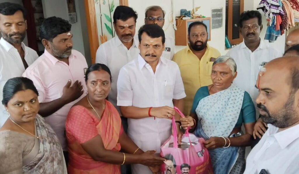 கரூர் மாநகராட்சிக்குட்பட்ட கோடங்கிபட்டி பகுதியில் இன்று திராவிட முன்னேற்றக் கழகத்தின் சார்பாக பொதுமக்களுக்கு நலத்திட்ட உதவிகளை வழங்கிய முன்னாள் அமைச்சர் செந்தில் பாலாஜி அப்பகுதியில் உள்ள வீடுகளுக்கு சென்று நேரடியாக நலத்திட்ட உதவிகளை வழங்கினார்.