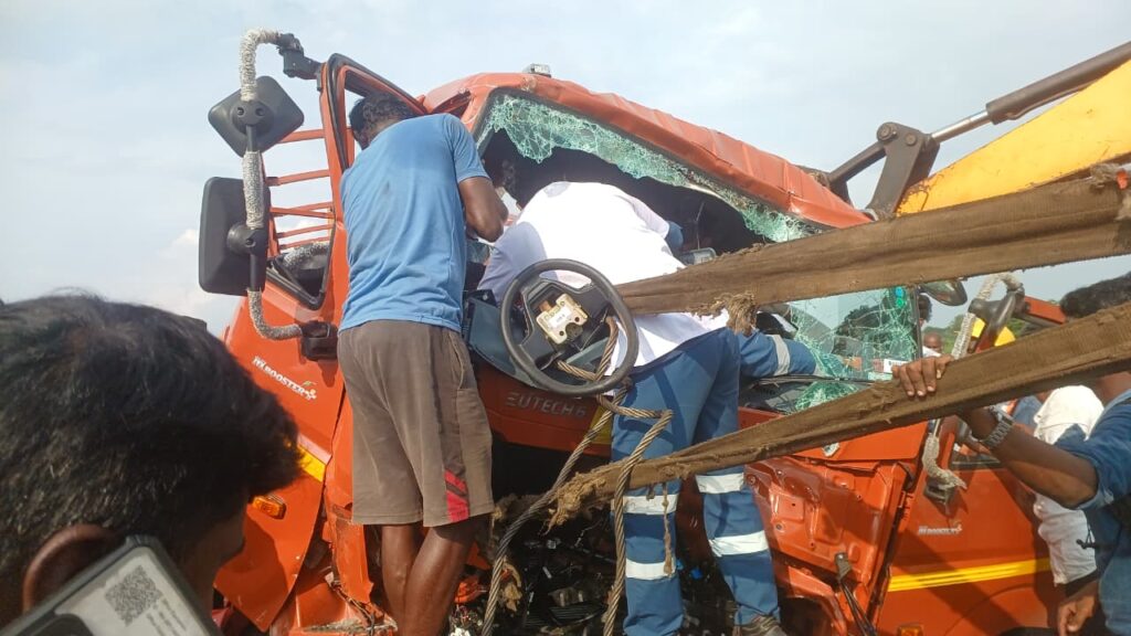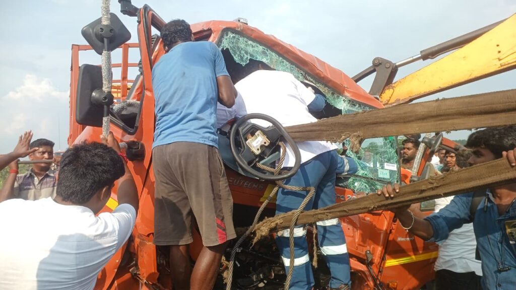 பொதுமக்கள் மற்றும் தீயணைப்புத் துறையினர் கடும் போராட்டத்திற்கு பின் தேசிய பொதுமக்கள் மற்றும் தீயணைப்புத் துறையினர்நெடுஞ்சாலைத்துறை ஜேசிபி மற்றும் அப்பகுதி மக்கள் இணைந்து படுகாயத்துடன் மீட்டனர்.