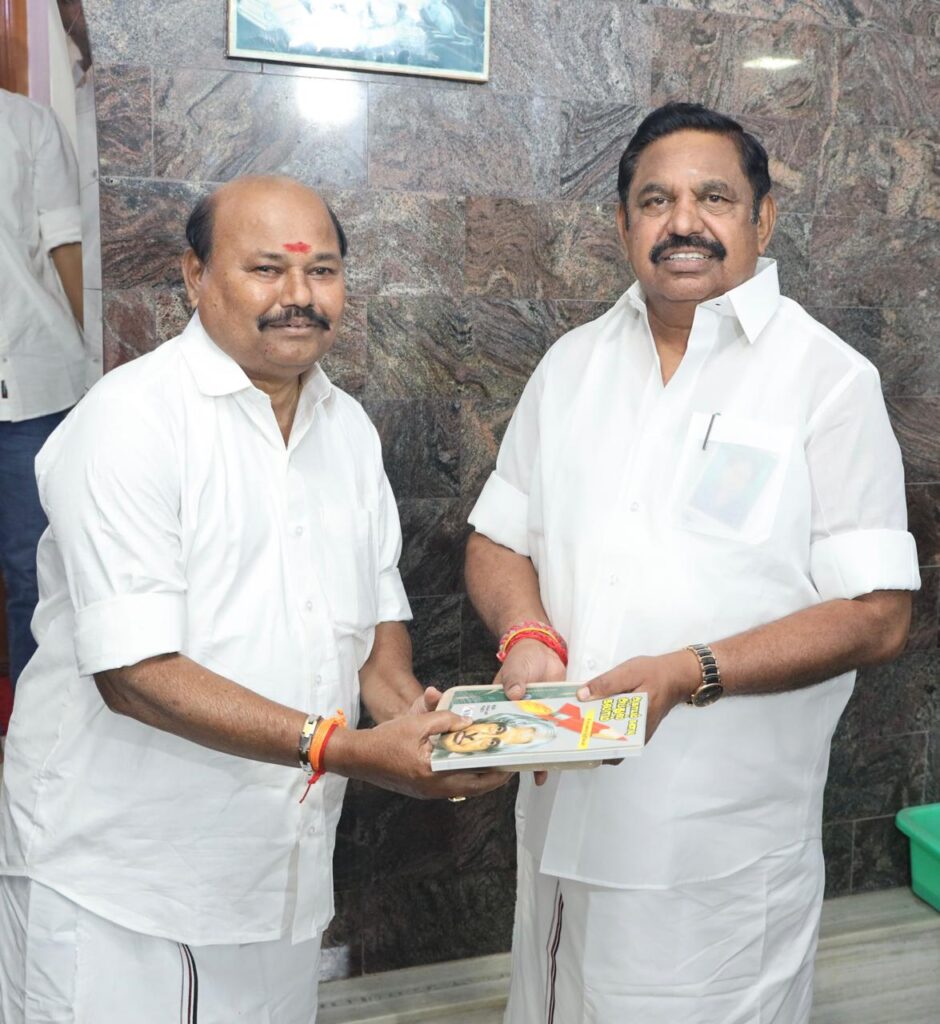 மாநில எம் ஜி ஆர் மன்ற இணைச் செயலாளரும் சாத்தூர் சட்டமன்ற தொகுதி முன்னாள் எம்எல்ஏ மான எதிர் கோட்டை எஸ்.ஜி சுப்பிரமணியன் சேலத்தில் உள்ள அதிமுக பொதுச் செயலாளர் எடப்பாடியார் இல்லத்திற்கு நேரில் சென்று தீபாவளி வாழ்த்து தெரிவித்தார்.