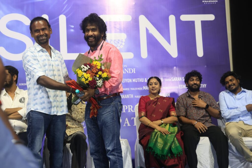 சைலண்ட் என் முதல் குழந்தை. இந்த தலைப்புக்கும் எனக்கும் நிறையப் பந்தம் இருக்கிறது. சின்ன வயதில் அதிகம் பேச மாட்டேன், அதன் பிறகு வறுமை, அதன் பின் போராட்டம் இந்த அனைத்துக்கும் இந்த சைலண்ட் பதிலாக இருக்கும். ராம் பிரகாஷ் சார் இந்த வாய்ப்பிற்கு நன்றி சார். பத்திரிக்கையாளர்கள் இந்த சைலண்ட் படத்திற்கு ஆதரவு தந்து தூக்கி விட வேண்டும். இங்கு வந்து வாழ்த்திய பிரபலங்கள் அனைவருக்கும் என் நன்றிகள். என் பெற்றோர் இன்று உயிருடன் இல்லை. உங்கள் அனைவரையும் என் பெற்றோராக நினைத்து வணங்குகிறேன் நன்றி என்றார்.