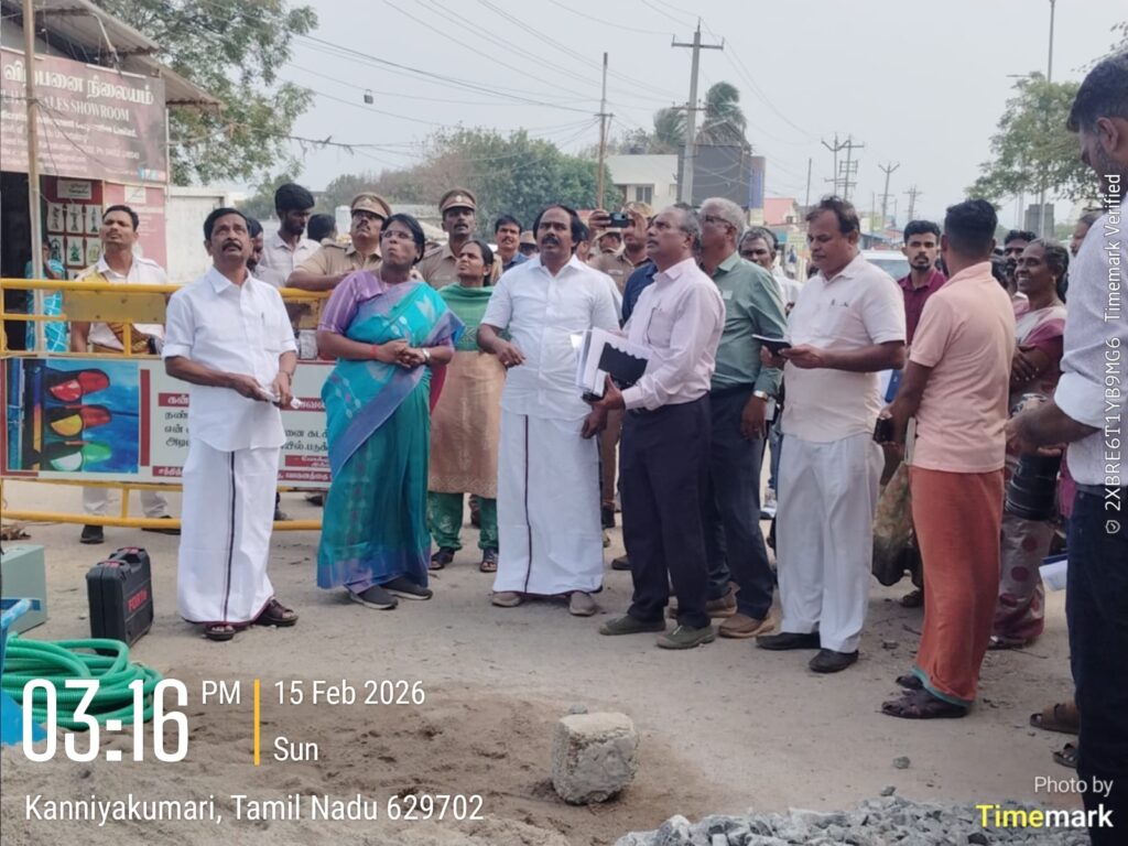 இதற்கான இறுதிக்கட்ட பணிகள் நடைபெற்று வருகிறது. இதனை தமிழக பால் வளத்துறை அமைச்சர் மனோ தங்கராஜ், மாவட்ட ஆட்சியர் அழகு மீனா, நாகர்கோவில் கோட்டாட்சியர் காளீஸ்வரி, நகராட்சி மண்டல பொறியாளர் சனல்குமார், பொதுப்பணிதுறை கட்டிட பிரிவு செயற்பொறியாளர் ஜோசப்ரன்ஸ், ஆகியோர் ஆய்வு செய்தனர். இந்த ஆய்வின்போது கன்னியாகுமரி நகராட்சி தலைவர் குமரி ஸ்டீபன்,நகராட்சி ஆணையர் கண்மணி ஆகியோர் கலந்து கொண்டனர்.