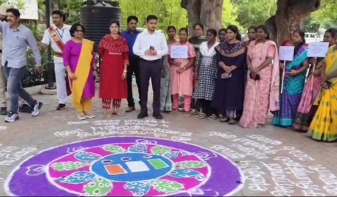 இந்திய தேர்தல் ஆணைய அறிவிப்பின் பேரில் கோவை மாவட்டம் முழுவதும் சிறப்பு தீவிர வாக்காளர் பட்டியல் திருத்த பணிகள் நடைபெற்று வருகின்றன. இதனை பொதுமக்களும் வாக்காளர்களும் எளிதில் புரிந்து கொள்ளும் வகையில் ரங்கோலியின் மூலம் விழிப்புணர்வு ஏற்படுத்தப்பட்டதாக தெரிவித்தார்.