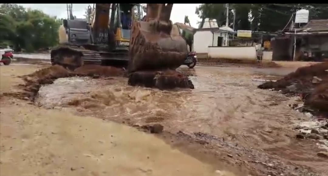 கோவை, மாநகராட்சியின் முக்கிய குடிநீர் ஆதாரமாக சிறுவாணி குடிநீர் உள்ளது. சிறுவாணி அணையில் இருந்து பெறப்படும் நீர் சிறுவாணி சுத்திகரிப்பு நிலையத்தில் சுத்திகரிக்கப்பட்டு ராட்சத குழாய்கள் மூலம் கோவை மாநகராட்சிக்கு கொண்டு வரப்பட்டு பொதுமக்களுக்கு விநியோகம் செய்யப்பட்டு வருகிறது. இதன் இடையே கோவை பேரூர் அருகே உள்ள காளம்பாளையம் பகுதியில் சாலை விரிவாக்க பணிகள் நடைபெற்ற வரும் நிலையில் சாலையோரம் இருந்த மரத்தை ஜேசிபி மூலம் அகற்றும் பணி நடைபெற்றது. அதில் மரத்தின் அடியில் சென்று கொண்டு இருந்த சிறுவாணி குடிநீர் குழாய் உடைந்து தண்ணீர் வெளியேறி வருகிறது. ராட்சதக் குழாயில் ஏற்பட்ட பெரிய உடைப்பு காரணமாக தண்ணீர் பீறிட்டு வெளியேறுவதால் சாலையில் குடிநீர் ஆறு போல் பெருக்கெடுத்து ஓடுகிறது. சுமார் ஒரு மணி நேரத்துக்கும் மேலாக தண்ணீர் சாலையில் பெருக்கெடுத்து வீணாகி வருவதால், கோவை மாநகராட்சி பொதுமக்கள் கலக்கத்திற்கு உள்ளாகி உள்ளனர்.