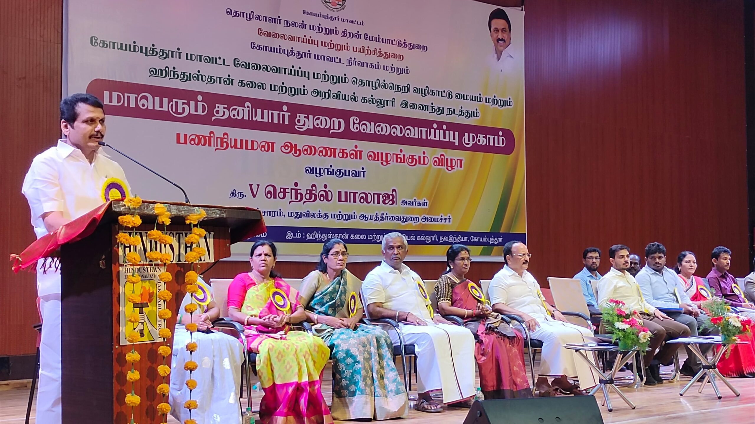 அதேபோல வேலைவாய்ப்பை எடுத்துக் கொண்டால், தனியார் துறையின் பங்களிப்போடு அரசு இணைந்து முகாமினை செயல்படுத்திக் கொண்டு இருக்கிறது. கோவை விமான நிலைய விரிவாக்கத்திற்கும், நிலங்கள் கையகப்படுத்தப்பட்டு ஒப்படைக்கப்பட்டு இருக்கிறது, இதுபோல கோவைக்கு நிறைய திட்டங்கள் செயல்படுத்தப்பட்டு கொண்டு இருக்கிறது. அதேபோல இந்த வேலை வாய்ப்பு முகாம் உங்களுக்காக அரசால் ஏற்படுத்திக் கொடுக்கப்பட்டு இருக்கிறது, அதனால் வேலை தேடி வந்திருப்பவர்கள் தங்களுக்கு தகுந்த கம்பெனிகளை தேர்ந்தெடுத்து பணி நியமன ஆணை பெற்றுக்கொள்ள வேண்டும் என கேட்டுக்கொள்கிறேன் என கூறினார்.