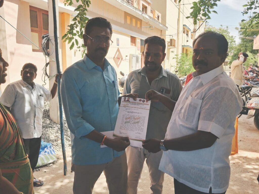 கோரிக்கை மனுவை பள்ளபட்டி ஊராட்சி செயலாளர் செல்லபாண்டியிடம் முன்னாள் ஊராட்சி மன்ற உறுப்பினர் வைர குமார் மனு அளித்தார்.