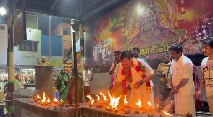 அதைத் தொடர்ந்து கோவில் வளாகத்தில் தீபம் ஏற்றி சிறப்பு வழிபாடுகளுடன் தரிசனம் மேற்கொண்டார்.