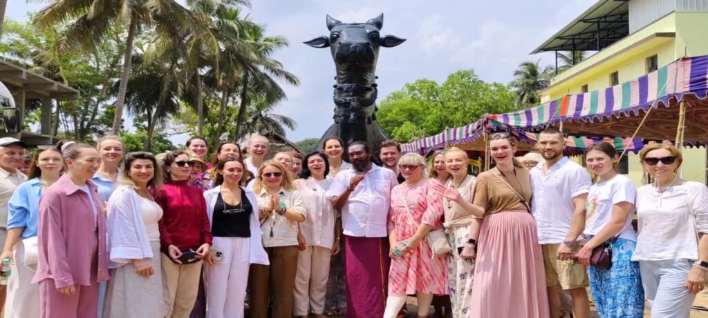 இன்று சித்திரை மாத வளர்பிறை பிரதோஷத்தை முன்னிட்டு பிரம்மாண்ட நந்தி முன்பு ஓம் நமச்சிவாய என்ற பஞ்சாட்சர மந்திரத்தை பக்தி பெருக்குடன் ஓதினர். தொடர்ந்து கைலாய வாத்தியங்கள் இசைக்கப்பட்டன. இதற்கு தகுந்தவாறு பக்தி பரவசத்துடன் நடன அசைவுகளை கொடுத்தவாறு சுவாமி தரிசனம் செய்த காட்சி காண்போரை மெய்சிலிர்க்க வைத்தது. தங்களுக்கு ஆன்மீக உணர்வை மிகுதியாக ஏற்பட்டுள்ளதாக அப்போது அவர்கள் தெரிவித்தனர்.
