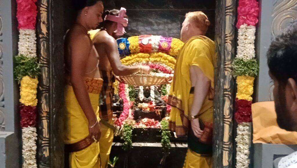 இந்நிகழ்ச்சியில் திருப்பனந்தாள் காசித்திருமடத்து22வது அதிபர் ஸ்ரீலஸ்ரீகாசிவாசி சபாபதித் தம்பிரான் சுவாமிகள் கலந்துகொண்டு யாகசாலையில் வைக்கப்பட்ட புனித கலசத்தை வேதாச்சாரியார்கள் தலையில் சுமந்தபடி வேத மந்திரங்கள் மேளதாளம் முழங்க கோயில் வளாகம் சுற்றி வந்து கருட பகவான் வட்டமிட்டு சரியாக 10:30 மணி அளவில் அடி கொண்ட அய்யனார் ஸ்ரீ கருப்பசாமி கோபுர கலசத்தில் புறப்பட்டதே தொடர்ந்து ஆயிரக்கணக்கான பொதுமக்கள் கலந்து கொண்டு சாமி தரிசனம் செய்தனர் அதனைத் தொடர்ந்து மாபெரும் அன்னதானம் நடைபெற்றது.