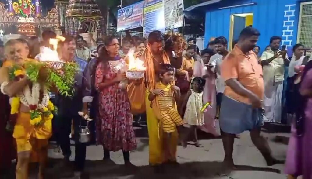 21 நாட்கள் நடைபெறும் இவ்விழாவின் முக்கிய நிகழ்வான நேற்று பொங்கல் விழாவும் இன்று காப்புக் கட்டி விரதம் இருந்த பக்தர்கள் அக்னி சட்டி எடுத்து நேர்த்திக்கடன் செலுத்தினர்.