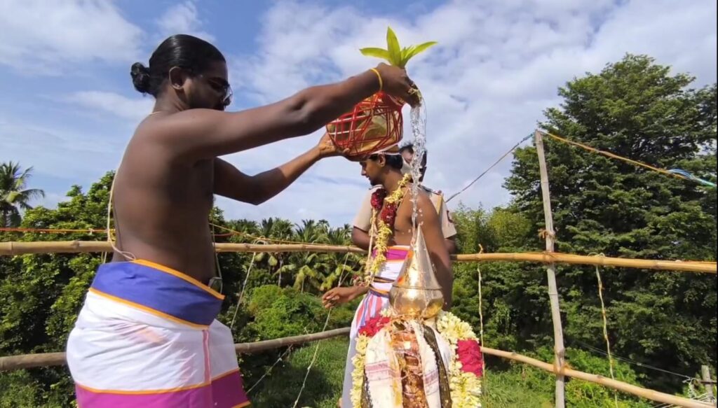 அதனைத் தொடர்ந்து மூலஸ்தானத்தில் உள்ள விமான கலசத்துக்கு புண்ணிய நீர் போன் நம்பர் விமான கலசத்தில் ஊத்தி மகா கும்பாபிஷேகம் விழா மிகச் சிறப்பாக நடைபெற்றது அதன் பின்பு அன்போடு இருந்த பக்தர்கள் மீது புனித நீர் தெளிக்கப்பட்டனர்