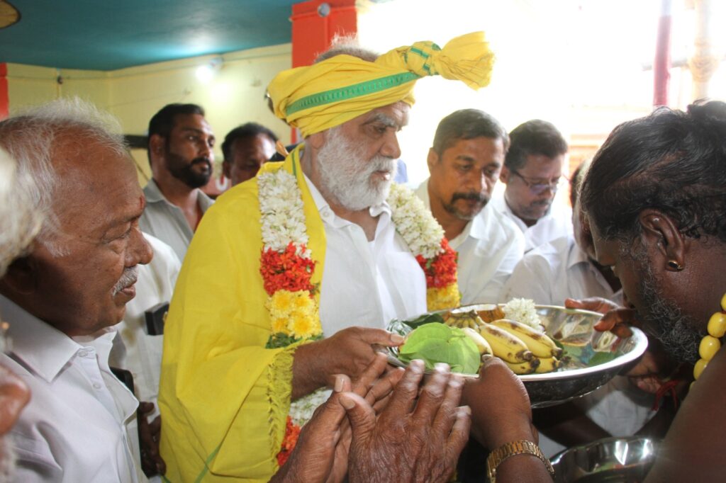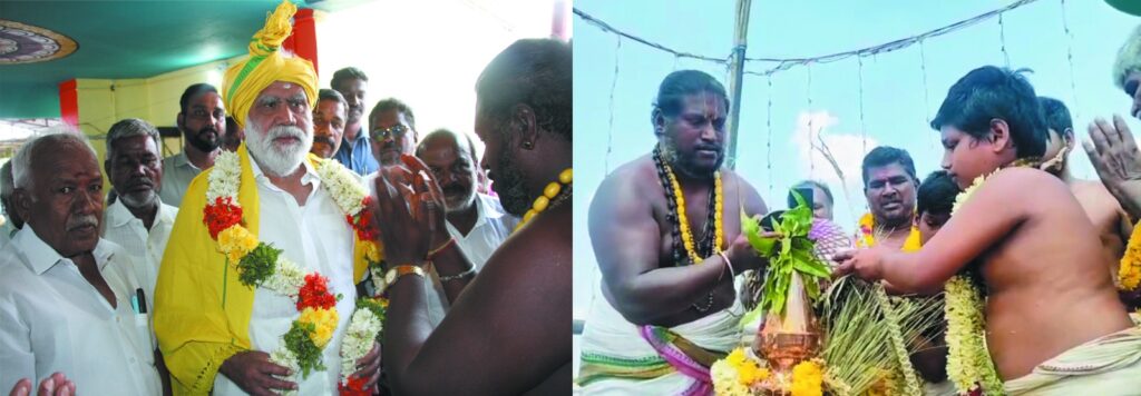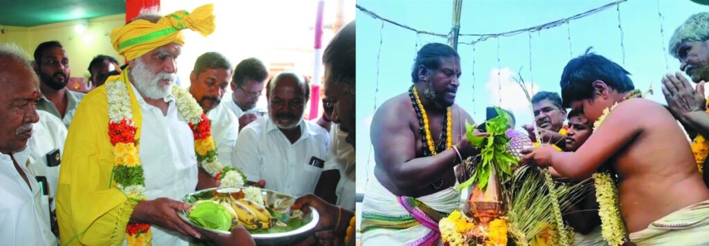 கருடன் வட்டமிட கோபுல கலசத்திற்கு புனித நீர் ஊற்றி கும்பாசேகத்தை நிறைவு செய்தனர். கும்பாபிசேக விழாவிற்கு திமுக மாநில துணை பொதுச் செயலாளரும், ஊரக வளர்ச்சித்துறை அமைச்சருமான ஐ.பெரியசாமி அவர்கள் வந்தபோது கோவில் கமிட்டியைச் சேர்ந்த நிர்வாகிகள் பொ.ராமலிங்கம், அ.பழனிச்சாமி, ஆர்.கோபாலகிருஷ்ணன், கன்னிமாநூத்து பி.ஜெயபாலன் தலைமையில் மேளதாளம் முழங்க பரிவட்டம் கட்டி உற்சாக வரவேற்பு அளித்தனர். அதன் பின்னர் கோவில் உள்ளே சென்று, பெருமாளை தரிசனம் செய்த அமைச்சர் ஐ.பெரியசாமி அவர்களுக்கு கோவில் நிர்வாகம் சார்பாக ராஜமாலை அணிவித்து பரிவட்டம் கட்டி மரியாதை செலுத்தினார்கள்.