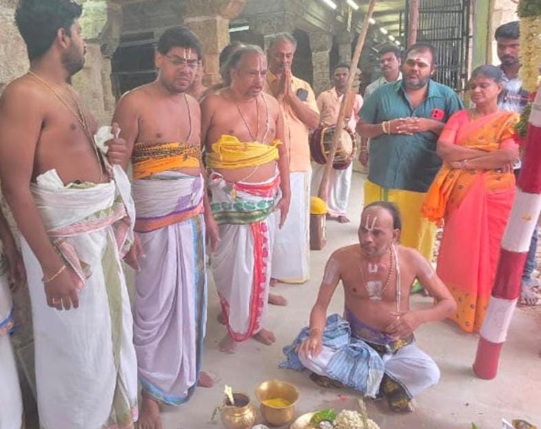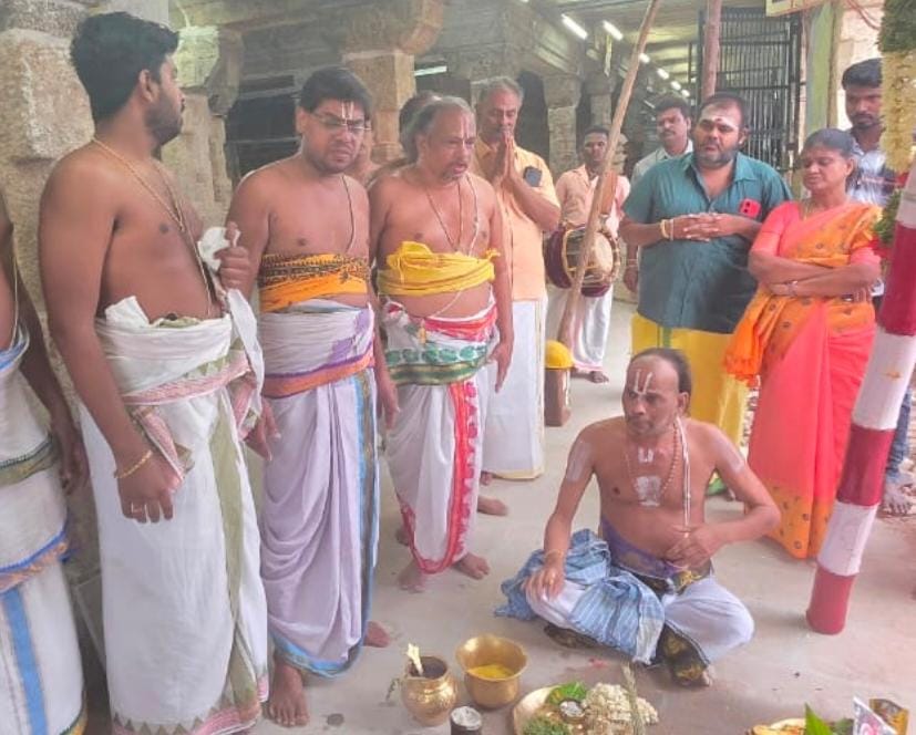 இதனை முன்னிட்டு சீனிவாச பெருமாளுக்கு சிறப்பு திருமஞ்சனம் அலங்காரம் செய்யப்பட்டு பெருமாள் ராஜ அலங்காரத்தில் திகழ்ந்தார் இதனை தொடர்ந்து கோயில் அர்ச்சகர்கள் ரகுராம பட்டாச்சாரியார் கிரி பட்டர் பத்ரி பட்டர் ஆகியோர் வைணவ ஆகம முறைப்படி பூஜைகளை செய்து முகூர்த்தக்கால் நட்டு வைத்தனர்.இந்த நிகழ்ச்சியில் கோயில் செயல் அலுவலர் சௌ.சக்கரை அம்மாள் கோயில் மணியம் கர்ணன் திருப்பணி உபயதாரர்கள் கோயில் அலுவலர்கள் பக்தர்கள் திரளாக கலந்து கொண்டனர்.