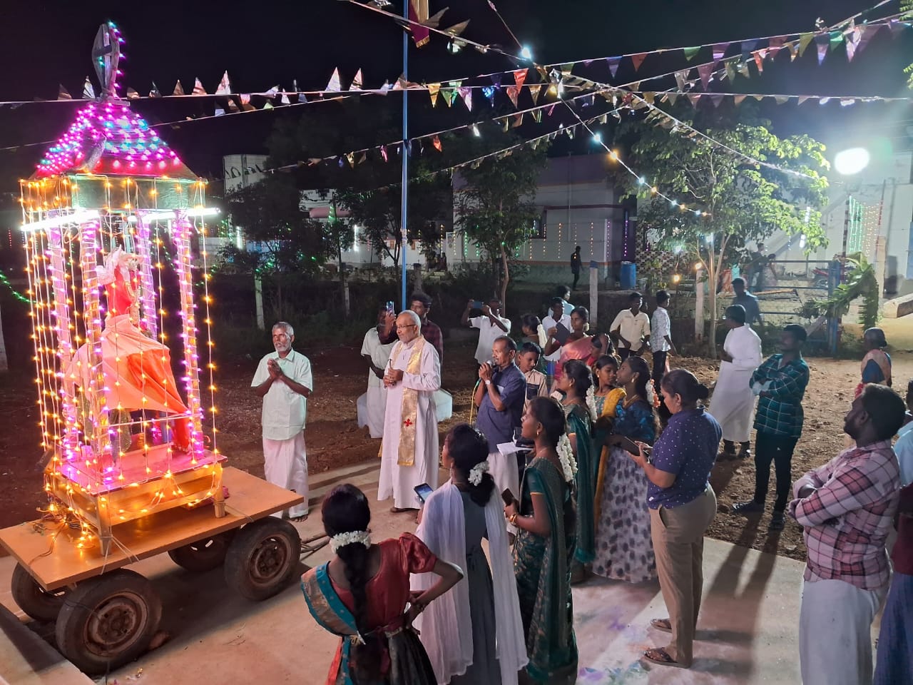 ஆலங்குளம் விடிவெள்ளி தொன்போஸ்கோ பங்கு தந்தையர்கள் தலைமை வகித்தனர். தொடர்ந்து தேர் பவனி நடைபெற்றது சுற்றுவட்டாரத்தைச் சேர்ந்த திரளான மக்கள் கலந்து கொண்டு இறை ஆசீர்வாதம் பெற்றனர்.