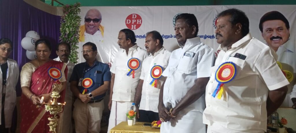 மாவட்ட மருத்துவ பணிகள் துணை இயக்குநர் யசோதா குத்து விளக்கு ஏற்றி துவக்கி வைத்தார், அருகில் இணை இயக்குநர் காளிராஜ், நகர் மன்ற தலைவர் மாதவன்,திமுக நகர செயலாளர் SRS தனபாலன், பொதுகுழு உறுப்பினர் மதியழகன், கவுன்சிலர் மொன்னி மற்றும் பலர் கலந்து கொண்டனர். இம்முகாமில் MLA சீனிவாசன் உரையாற்றுகையில், தமிழகத்தில் உணவு மாற்றம் காரணமாக நோய்கள் அதிக அளவில் பரவுகின்றன,அதே நேரத்தில் இங்கு மருத்துவர்களும் அதிக அளவில் உள்ளனர் என்றார்.