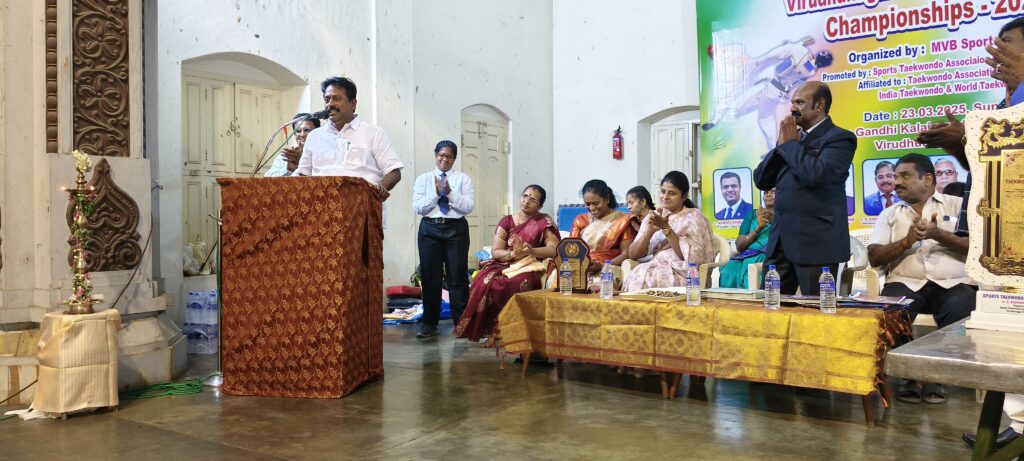 அதனை தொடர்ந்து 11 மணியளவில் இராஜபாளையம் காந்தி கலை மன்றத்தில் சிறுவர் சிறுமியர்களுக்கான விருதுநகர் மாவட்ட அளாவிலான டேக்வண்டா (Taekwondo Champion 2025) போட்டியை தொடங்கிவைத்தார்.