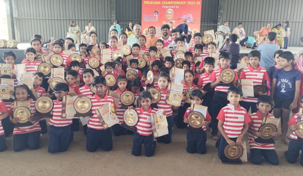 யோகா குறித்து பள்ளி மாணவர்களிடையே விழிப்புணர்வு ஏற்படுத்தும் விதமாக நானா யோகா ஸ்டுடியோ மற்றும் ஓசோன் யோகா மையம் சார்பாக கோவை சின்னியம்பாளையம் பகுதியில் உள்ள தனியார் கல்லூரி வளாகத்தில் மாநில அளவிலான யோகா சாம்பியன்ஷிப் போட்டிகள் நடைபெற்றது.