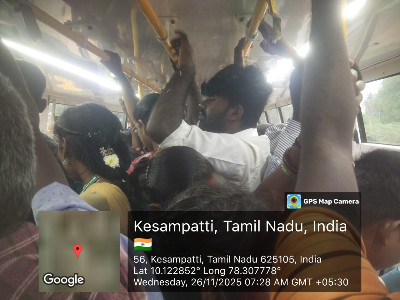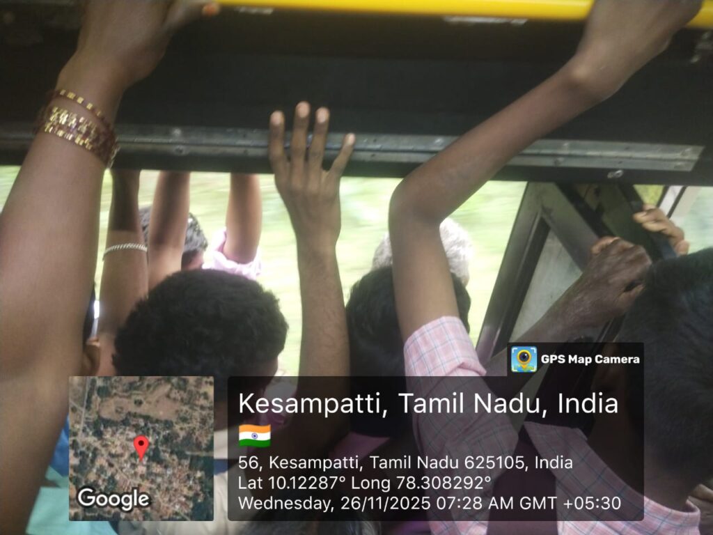 மதுரை மாவட்டம் மேலூர் வட்டம் சேக்கிபட்டி கேசம்பட்டி பட்டூர் மேலவளவு, எட்டிமங்கலம் ஆகிய ஊராட்சிகளுக்கு உட்பட்ட பல கிராமங்களை சேர்ந்த பள்ளி,கல்லுரி மாணவ மாணவியர்கள் மற்றும் தினக்கூலிகளாக வேலைக்கு செல்லும் பொதுமக்கள் காலை 7.10 திண்டுக்கல் மாவட்டம் நத்தம் வட்டம் சமுத்திரப்பட்டியில் இயக்கப்படும் M5A-அரசுப்பேருந்தில் சென்றால்தான் சரியான நேரத்திற்கு செல்ல முடியும் என்ற காரணத்தால் ஆபத்தான முறையில் பயணம் செய்கிறார்கள்.