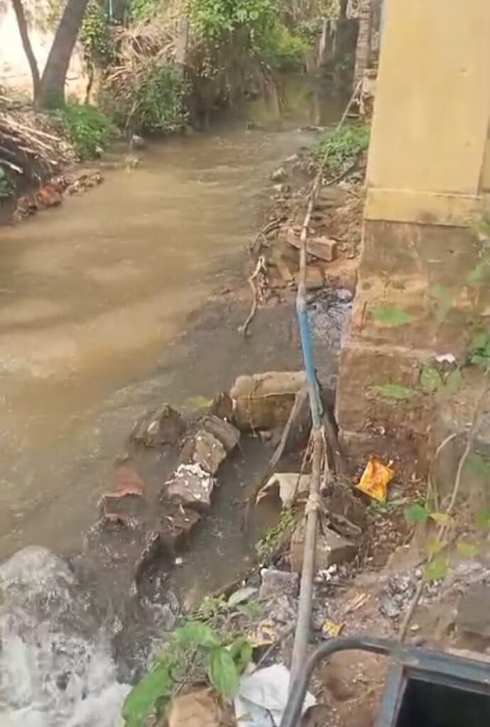 இதனால் மாணவர்களின் கல்வி பாதிக்கப்படுவதுடன் பாம்பு பல்லி போன்ற பூச்சிகள் பள்ளிகளுக்குள் சென்று ஆபத்தான சூழ்நிலையை மாணவர்களுக்கு உருவாக்குகிறது. இதனை கருத்தில் கொண்டு கடந்த சில மாதங்களுக்கு முன்பு மாணவர்கள் மற்றும் பெற்றோர்கள் தரப்பில் அதிகாரிகளிடம் மனு அளிக்கப்பட்டது. ஆனால் இதுவரை எந்த நடவடிக்கையும் எடுக்கவில்லை. இந்த நிலையில் நேற்று இரவு பெய்த கனமழை காரணமாக பள்ளி அருகே மழை நீர் ஆறாக பெருக்கெடுத்து ஓடுகிறது.
