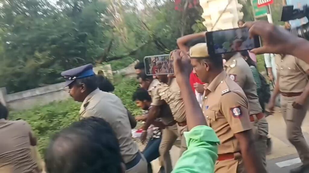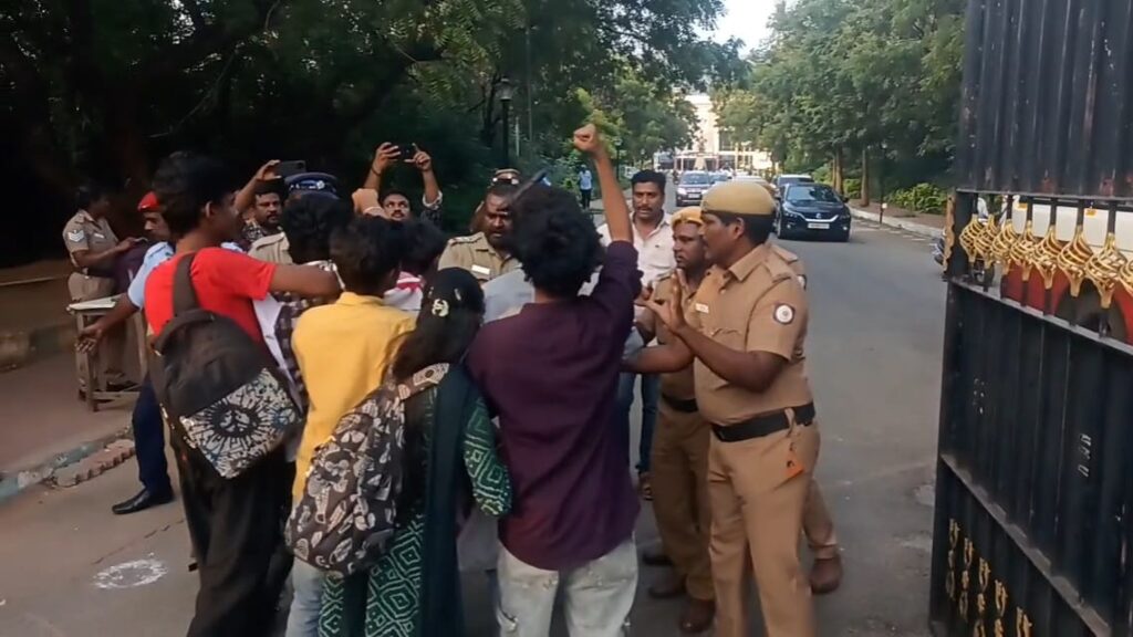 மதுரை காமராஜர் பல்கலைக்கழகத்தில் நடைபெற்ற 57வது பட்டமளிப்பு விழாவில் கலந்து கொண்ட ஆளுநர் ரவிக்கு எதிராக இந்திய மாணவர் சங்கத்தை சேர்ந்த ஏழு மாணவர்கள் ஒரு மாணவி உட்பட எட்டு பேர் திடீரென பல்கலைக்கழக வாயிலில் முற்றுகை போராட்டம் நடத்தினர்.