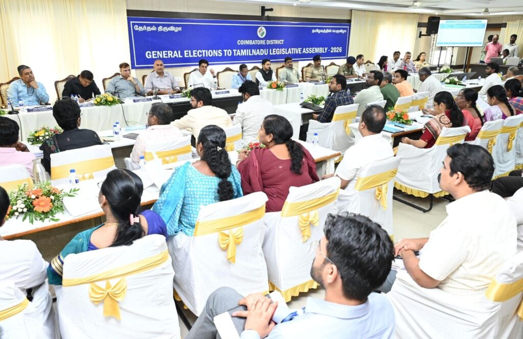 மேலும் இந்த நிகழ்வில் கோவை மாவட்டத்தில் உள்ள பத்து சட்டமன்ற தொகுதிகளின் தேர்தல் அலுவலர்களும் பங்கேற்று தற்போது வரை அந்தந்த சட்டமன்ற தொகுதியில் என்னென்ன பணிகள் மேற்கொள்ளப்பட்டுள்ளது என்பது குறித்து விவரித்தனர்.