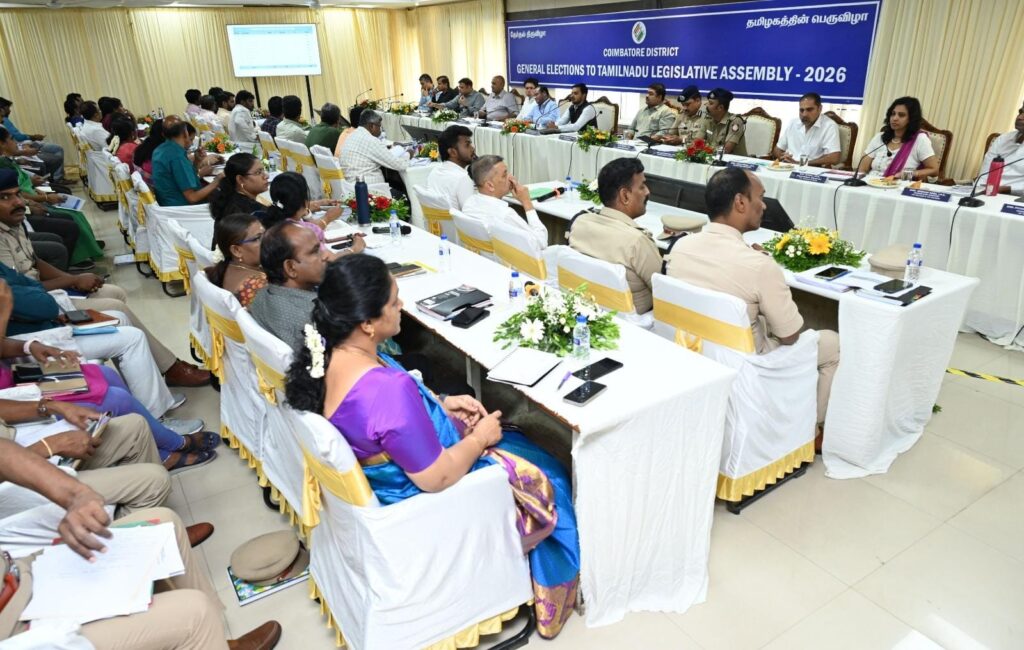 அதன்படி கோவை மாவட்ட ஆட்சியர் அலுவலகத்தில் சட்டமன்றத் தேர்தலை முன்னிட்டு கோவை மாவட்டத்திற்கு நியமிக்கப்பட்டுள்ள பொதுப்பார்வையாளர்கள் சுனில் குமார் யாதவ், சஞ்சய் குமார், பிரஞ்சல் யாதவ், யசேந்திர சிங், காவல் கண்காணிப்பு பார்வையாளர் சுதீர்குமார், செலவின கண்காணிப்பு பார்வையாளர் ரோகிணி உள்ளிட்ட பல்வேறு அதிகாரிகள் மாவட்ட ஆட்சியர் பவன் குமார் முன்னிலையில் ஆய்வு கூட்டம் மேற்கொண்டனர்.