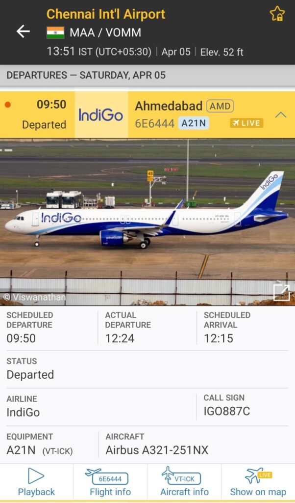 சென்னையில் இருந்து அகமதாபாத்திற்கு, 166 பயணிகள் உட்பட, 173 பேருடன் புறப்பட்ட, இண்டிகோ ஏர்லைன்ஸ் பயன்கள் விமானம், ஓடுபாதையில் ஓடத் தொடங்கிய போது, திடீரென இயந்திர கோளாறு ஏற்பட்டு, விமானம் அவசரமாக ஓடுபாதையில் நிறுத்தப்பட்டது.