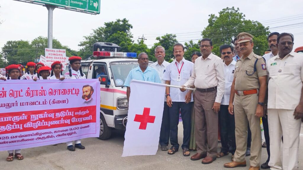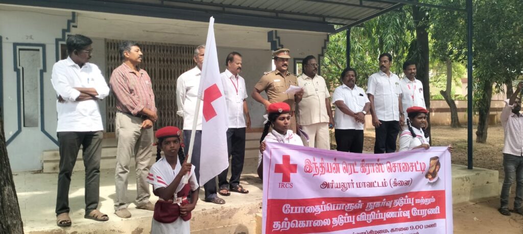 இந்தியன் ரெட் கிராஸ் சொசைட்டி, அரியலூர் மாவட்ட கிளையின் சார்பில் போதைப்பொருள் நுகர்வு தடுப்பு மற்றும் தற்கொலை தடுப்பு விழிப்புணர்வு பேரணி நடைபெற்றது.அண்ணா சிலை அருகே, விழிப்பு ணர்வு பேரணியினை, இந்தியன் ரெட் கிராஸ் சொசைட்டி, அரியலூர் மாவட்ட கிளையின் அலுவலர் சார் தலைவர் மற்றும் மாவட்ட ஆட்சியர் பொ. இரத்தினசாமி கொடியசைத்து துவக்கி வைத்தார்.