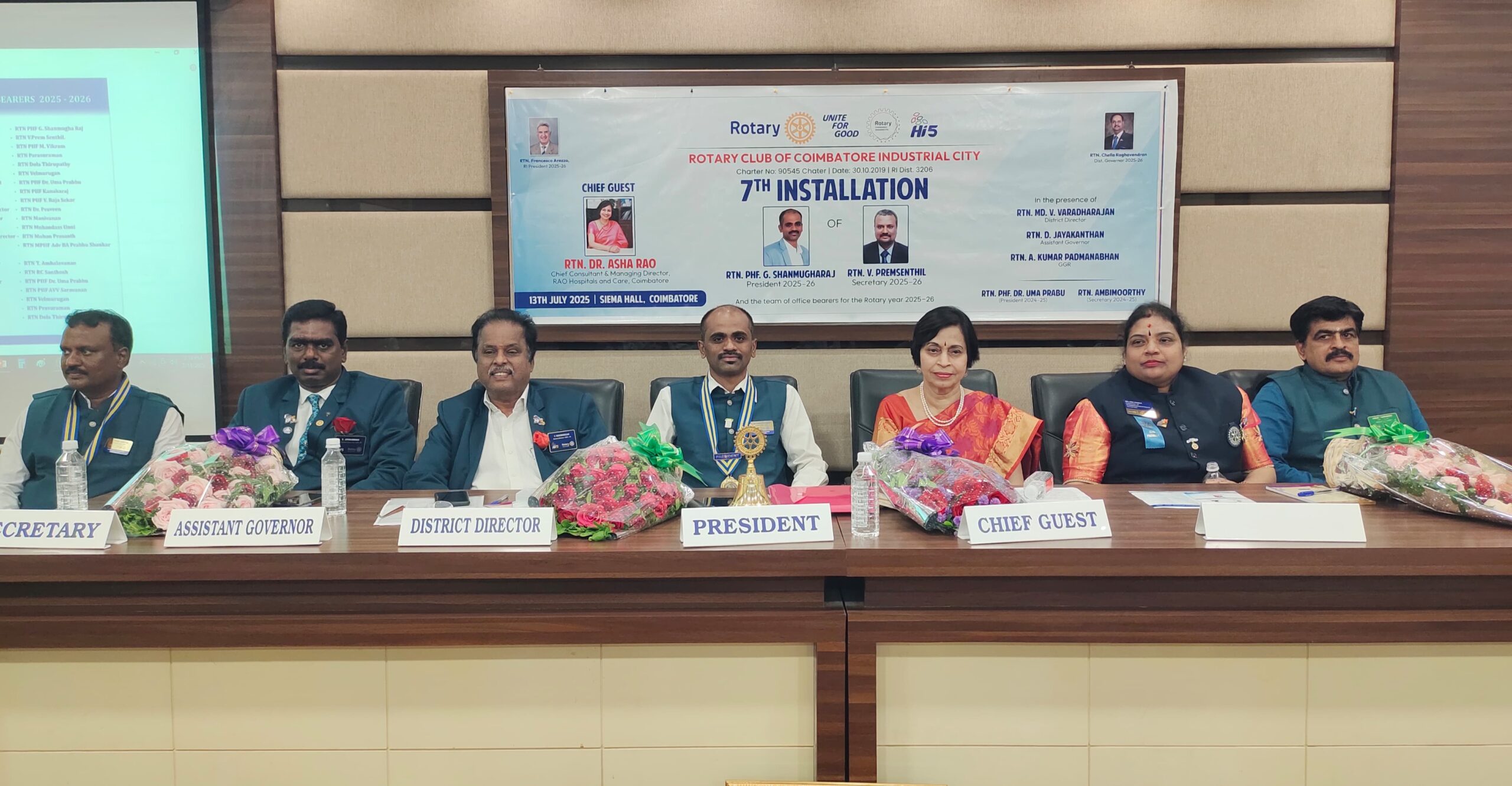 ரோட்டரி கிளப் ஆஃப் கோயம்புத்தூர் இண்டஸ்ட்ரியல் சிட்டி 2025-26 ஆம் ஆண்டிற்கான புதிய நிர்வாகிகள் பதவி ஏற்பு விழா வெகு விமரிசையாக நடைபெற்றது.