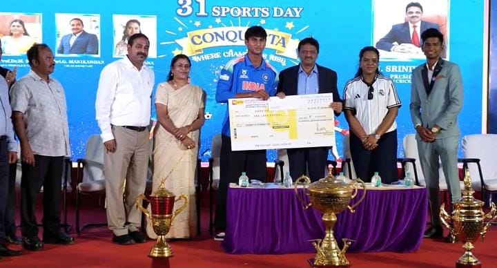 கல்லூரி தலைவர் மாலா தலைமையில் நடைபெற்ற இந்த விழாவில் சிறப்பு விருந்தினராக தமிழ்நாடு கிரிக்கெட் சங்க தலைவர் சீனிவாச ராஜ் கலந்து கொண்டார். மேலும், 19 வயதிற்குட்பட்டோருக்கான கிரிக்கெட் போட்டியில் வெற்றி பெற்ற தமிழக வீரர்கள் அம்பரிஷ் மற்றும் தீபேஷ் ஆகியோரும் கலந்து கொண்டு மாணவர்களுக்கு ஊக்கமளிக்கும் வகையில் உரையாற்றினர்.