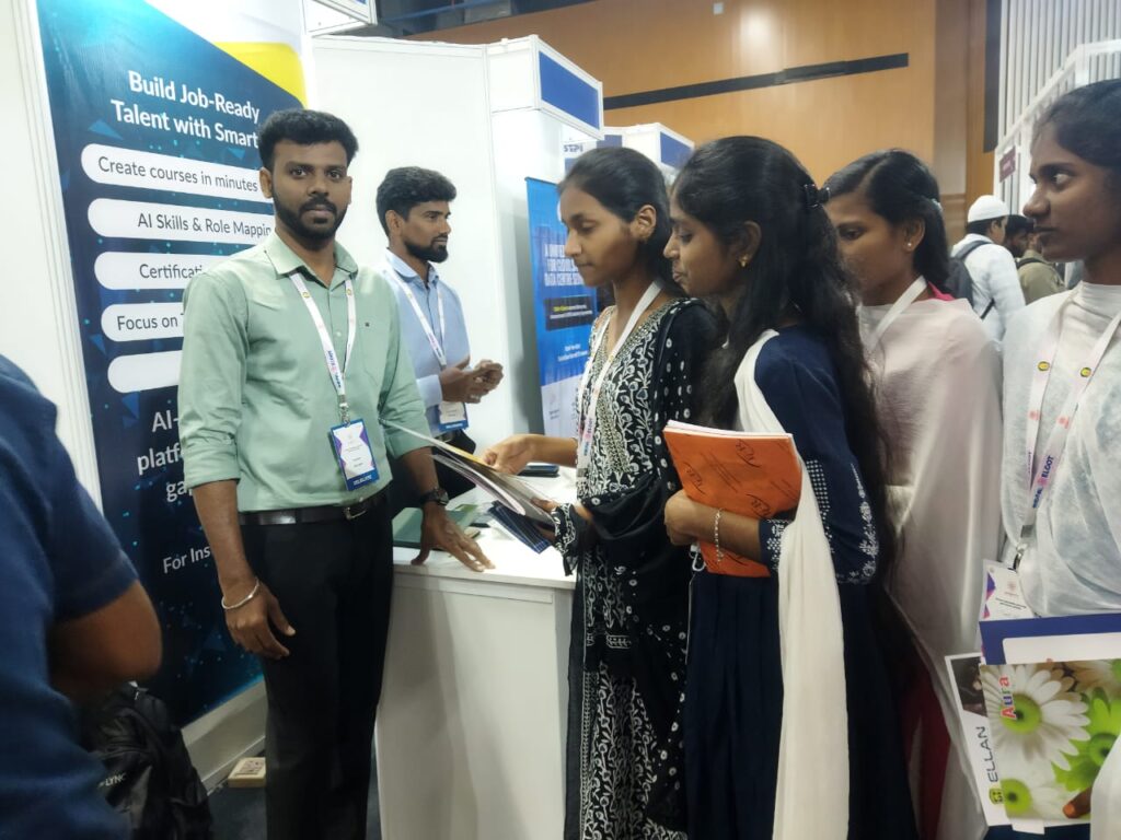 20 மாவட்டங்களில் உள்ள 59 கல்லூரிகளைச் சென்றடைந்த உமேஜின் DX வளாகத் திட்டங்கள், முன்னணி தொழில்நுட்பங்கள் (AI/பிளாக்செயின்/குவாண்டம்), தரவுத் தொழிற்சாலைகள், டிஜிட்டல் உள்கட்டமைப்பு (DPI/AI பொது சேவைகள்) மற்றும் MSME பயன்பாடுகள் போன்ற தலைப்புகளைப் பிரதிபலித்தன. இவை நியூரல் நெட்வொர்க்குகள் மற்றும் தரவு அறிவியல் குறித்த AI/ML பாடத்திட்டத்துடன் நேரடியாகத் தொடர்புடையவை. மதியம் 1:00 முதல் 3:00 மணி வரை, மாணவர்கள் 150-க்கும் மேற்பட்ட கண்காட்சி அரங்குகள் மற்றும் 50,000 சதுர அடி அனுபவ மண்டலத்தை ஆராய்ந்தனர். 4,000-க்கும் மேற்பட்ட பிரதிநிதிகள் மற்றும் 100-க்கும் மேற்பட்ட நிபுணர்களுக்கு மத்தியில், குறைக்கடத்திகள் மற்றும் கல்வித் தொழில்நுட்பத் துறைகளில் ஸ்டார்ட்அப் கிராண்ட் சேலஞ்சின் மண்டல இறுதிப் போட்டியாளர்களுடன் கலந்துரையாடினர்.