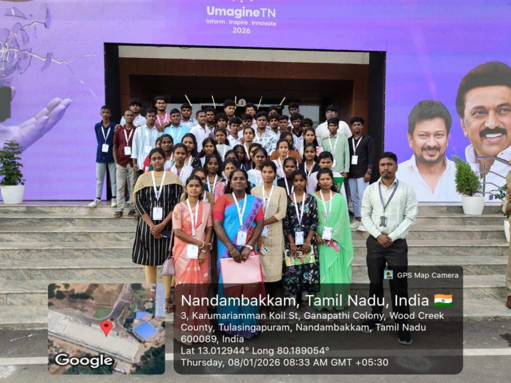 இந்த வருகை, ஜனவரி 7, 2026 அன்று இரவு 10:00 மணிக்கு புத்தனாம்பட்டி வளாகத்திலிருந்து ஏசி பேருந்து மூலம் புறப்பட்டுத் தொடங்கியது. தமிழ்நாடு அரசின் முதன்மை தொழில்நுட்ப உச்சி மாநாடான உமேஜின் TN 2026-இன் முதல் நாளுக்காக, காலை 8:30 மணிக்கு நந்தம்பாக்கத்தில் உள்ள சென்னை வர்த்தக மையத்தை அடைந்தனர். பங்கேற்பாளர்கள் தொடக்க விழாவிலும், செயற்கை நுண்ணறிவுத் திறன் மேம்பாடு மற்றும் 20 லட்சம் வேலைவாய்ப்புகளை உருவாக்குவதன் மூலம் தகவல் தொழில்நுட்பத் திறமைகளை உயர்த்துவது குறித்த முதலமைச்சர் மு.க. ஸ்டாலினின் முக்கிய உரையிலும் கலந்துகொண்டனர்.