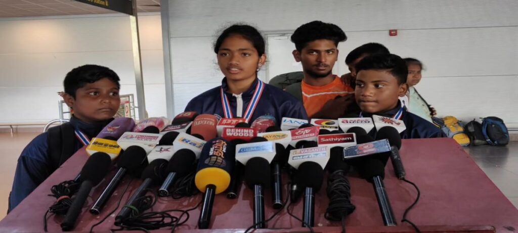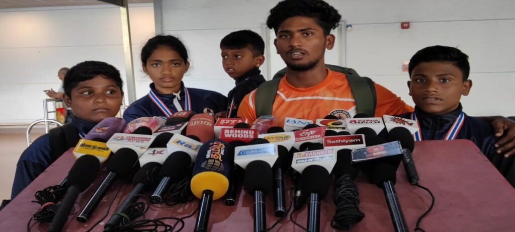 இந்தியா சார்பாக தமிழகத்திலிருந்து ஐந்து வீரர் வீராங்கனைகள் கலந்து கொண்டு நான்கு தங்க பதக்கமும்,ஒரு வெள்ளிப் பதக்கமும் வென்று சாதனை படைத்துள்ளனர்.இதையடுத்து பதக்கம் வென்ற வீரர் வீராங்கனைகள் விமான மூலம் சென்னை திரும்பினர்.