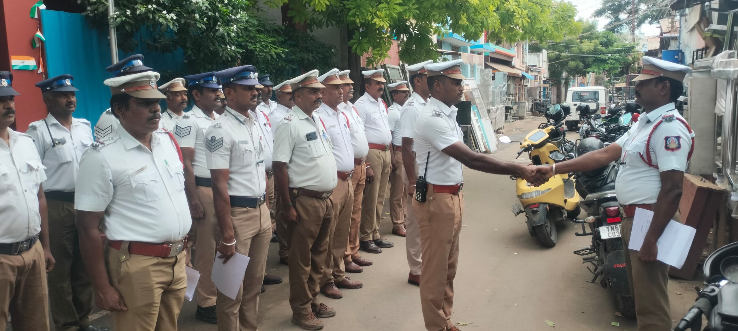 அதில் ஒரு பகுதியாக மதுரை மாநகர காவல் ஆணையாளர் ஆணைக்கு இணங்க திலகர் திடல் போக்குவரத்து காவல் மற்றும் கரிமேடு போக்குவரத்து காவல் நிலையங்களில் திலகர் திடல் போக்குவரத்து காவல் ஆய்வாளர் தங்கமணி தலைமையில் ஆன காவலர்கள் காவல் நிலையங்களில் உறுதிமொழி எடுத்துக் கொண்டு காவலர் தினம் வாழ்த்துக்களை தெரிவித்தனர்.