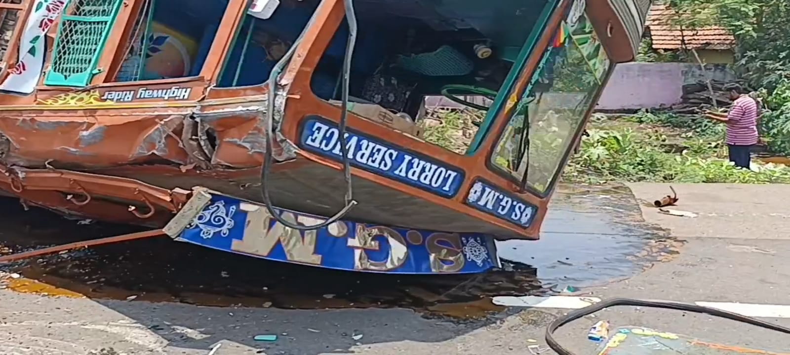 டேங்கர் லாரி தலைகீழாக கவிழ்ந்து விபத்து..,