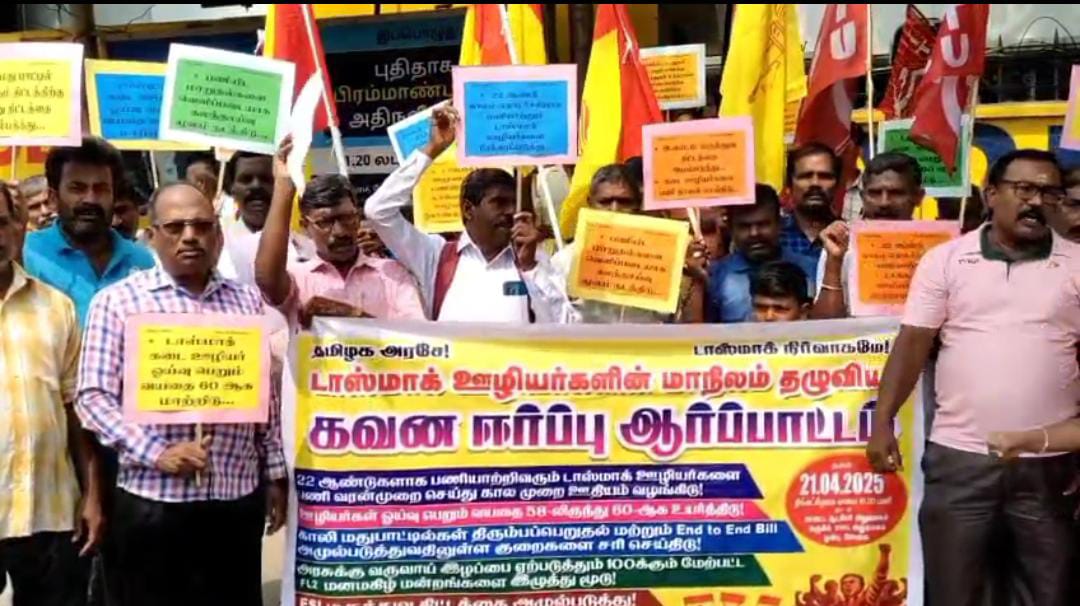 டாஸ்மாக் ஊழியர்களின் பல்வேறு கோரிக்கைகளை வலியுறுத்தி நடைபெற்ற இந்த கவன ஈர்ப்பு ஆர்ப்பாட்டத்தில் திரளான ஊழியர்கள் கலந்து கொண்டனர்.