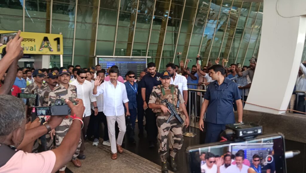 கடந்த முறை விஜய் கோவை வந்தபோது தவெக தொண்டர்கள் விமான நிலையத்தில் இருந்த ட்ராலிகள், தடுப்புகள் ஆகியவற்றை சேதப்படுத்தினர். இதனால் பாதுகாப்பு கருதி ஒய் ஜங்ஷன் பகுதியில் மட்டும் நிற்க போலீசார் அனுமதி வழங்கினர். இதனிடையே கோவை விமான நிலையம் வந்த விஜய் அங்கிருந்த தொண்டர்கள் உற்சாகமாக வரவேற்றனர்.