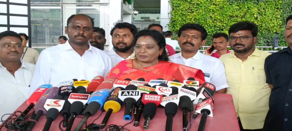 அப்துல் கலாமுக்கு செய்த குற்றத்தை திமுக மீண்டும் செய்யக்கூடாது பாஜக மூத்த தலைவர் தமிழிசை சௌந்தரராஜன் சென்னை விமான நிலையத்தில் பேட்டி