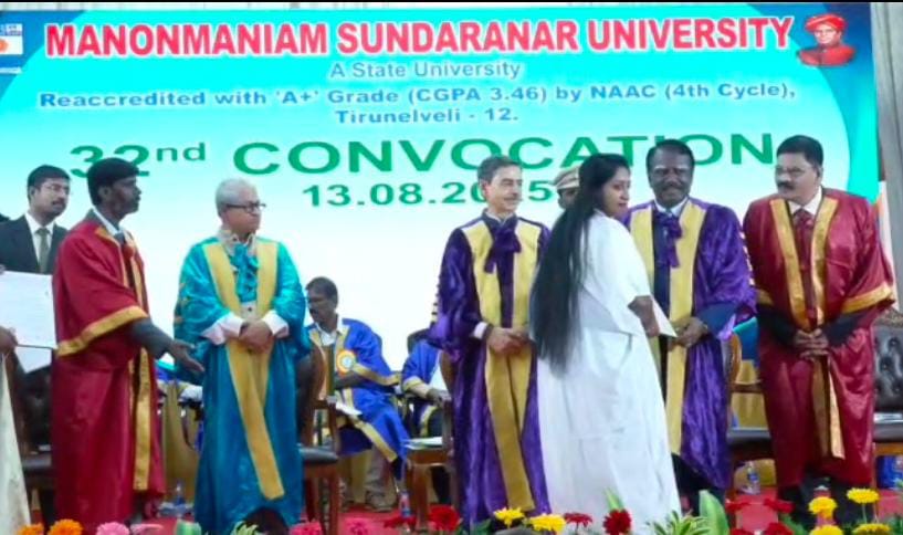 ஜீன்ஜோசப் திருமணத்திற்கு பின்னும் கல்வியை தொடர்ந்து பட்டம் பெற்றார். இந்த நிலையில் இன்று நெல்லை மனோன்மணி சுந்தரனார் பல்கலைக்கழகத்தின் 32_வது பட்டமளிப்பு விழாவில்,